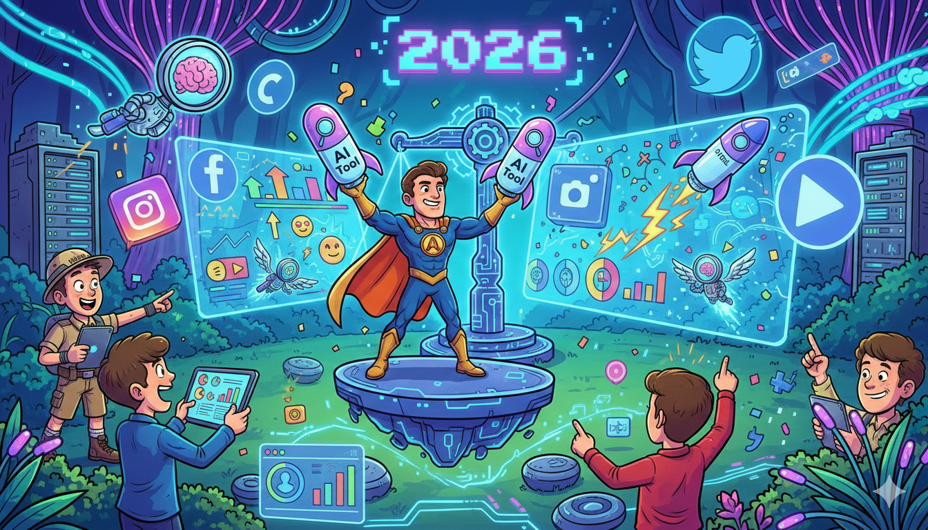 Social media in 2026 isn’t won by the brands that “post every day.” It’s won by the brands that can turn insight into content—fast: spot what the market is talking about, write a hook that stops the scroll, package it into something that looks native, publish on schedule, and measure what actually moved the needle.